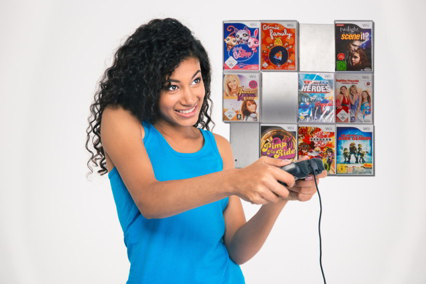 Highlight: Due to the patented magnet technology, the attachment of the Wii games remains completely invisible and seems to float on the wall.